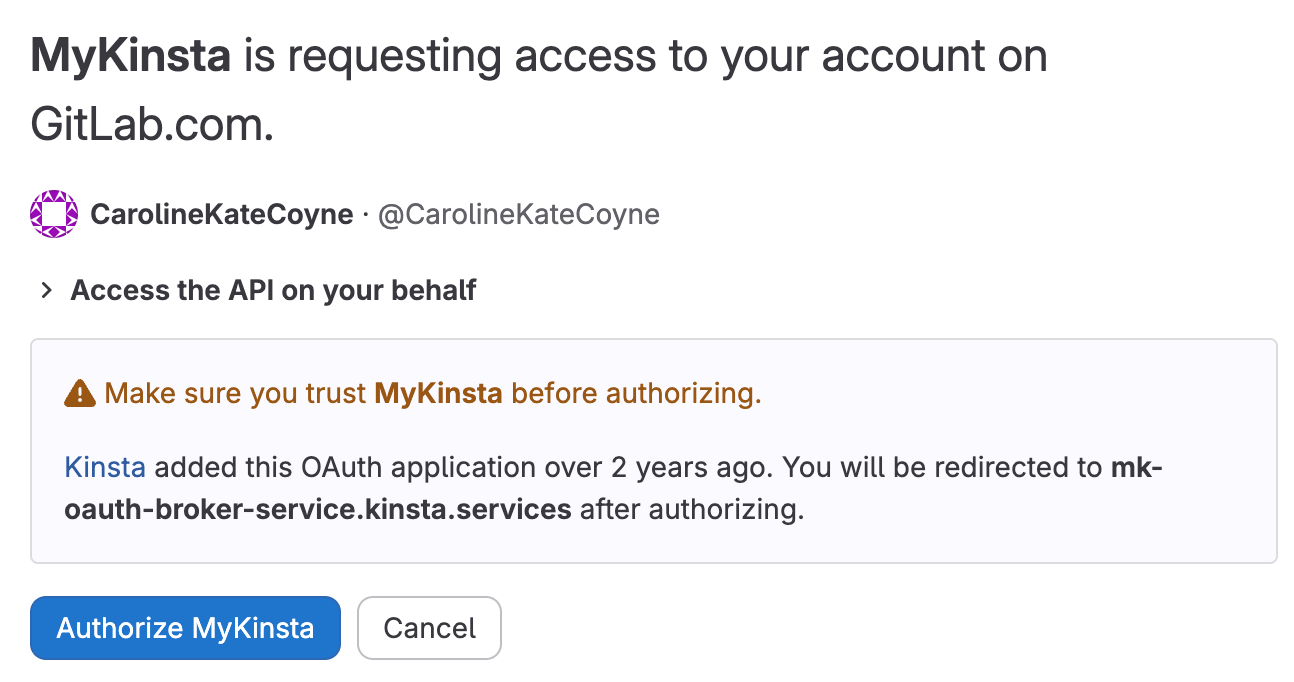 You may notice that the authorization process is facilitated by Kinsta. Don’t worry, as Sevalla is a Kinsta product, this is a normal part of the Sevalla experience. You’ll still be interacting with Sevalla’s features and services. Just follow the prompts to complete the authorization, and you’ll be all set!