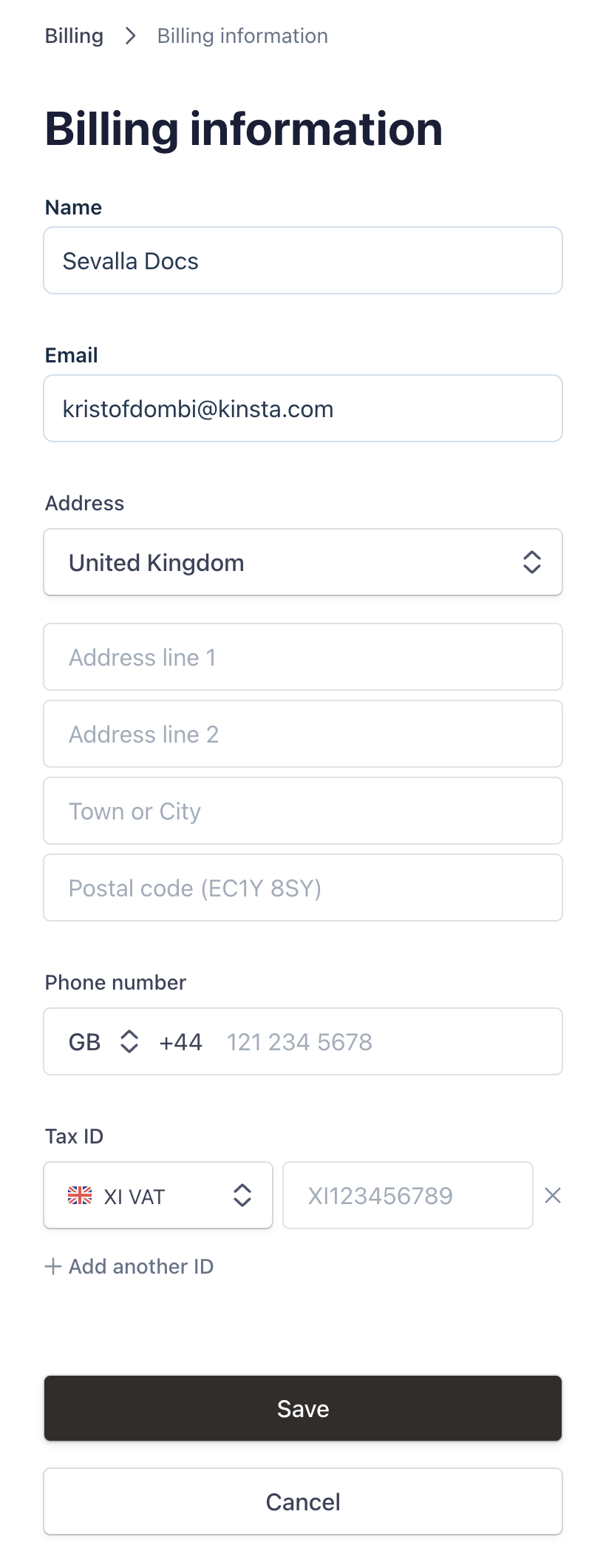 You can add your VAT number at any time within Settings > Billing > Manage billing > Update information. This opens the Stripe platform. In Tax ID, choose XI VAT for the UK, enter your VAT number, and click Save. Note that this can take on many formats, as each member state determines its own format. See the relevant format guide for more information:- EU VAT Numbers start with the issuing country’s two-letter code. See the EU VAT Number Format Guide for more information.